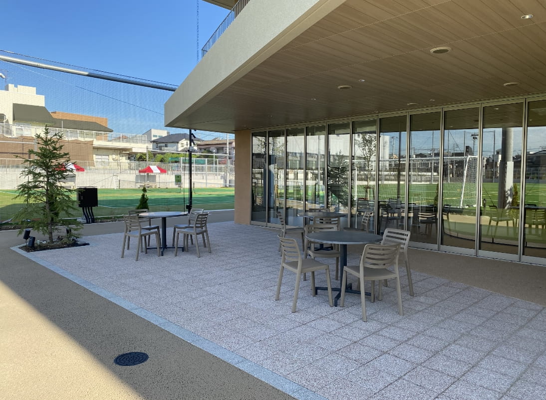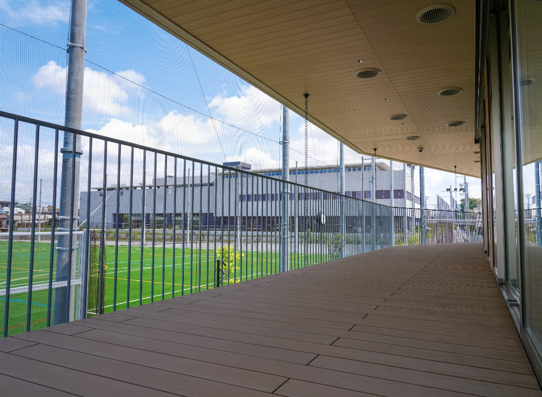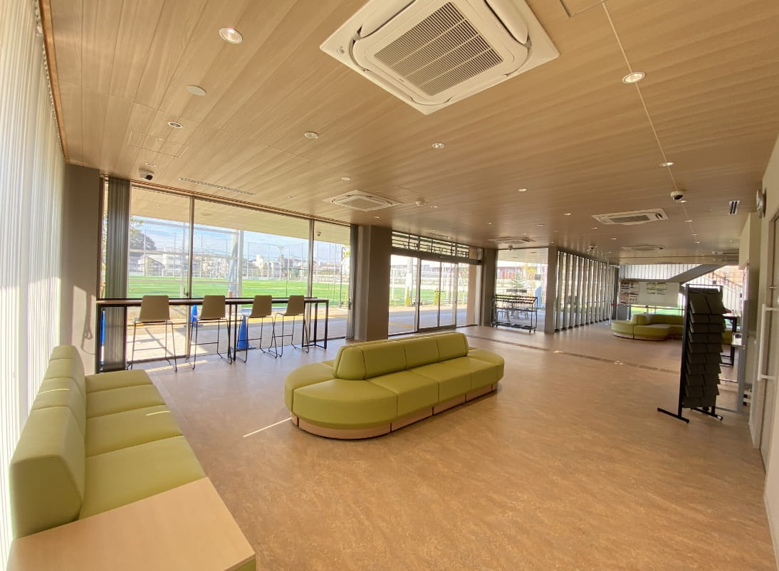 運動場を一望できるテラスもあり、管理棟から観覧いただく事も可能です。