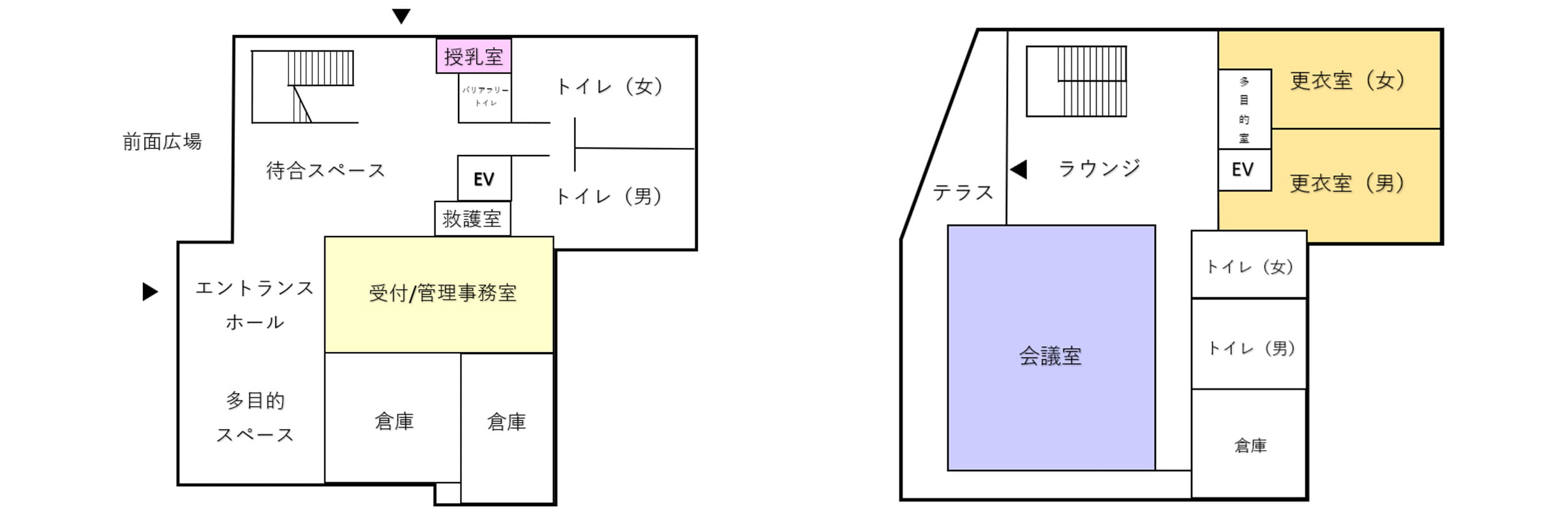 スポーツを楽しむ間の休憩や、他の利用者との交流に最適な空間となります。